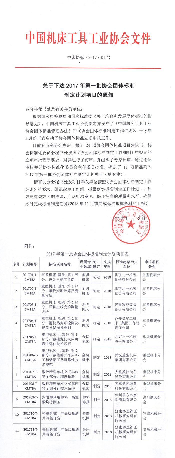 关于下达2017年第一批协会团体标准制定计划项目的通知