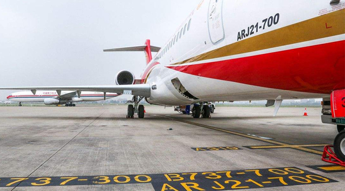 ARJ21是中国商飞公司研制的70-90座级中短程涡扇支线飞机,最大航程3700公里。2017年,ARJ21取得中国民航局颁发的生产许可证,生产提速、运行保障、客服服务、市场开拓等工作全面推进,产业化发展初见成效。