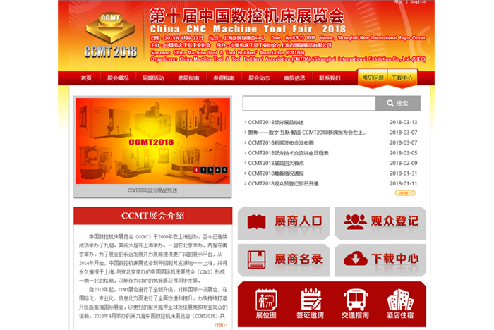 第十届中国数控机床展览会(CCMT2018)将于2018年4月9-13日在上海新国际博览中心举行。本届展会使用上海新国际博览中心N1-N5,W1-W5共10个室内展馆,展览总面积达到12万平方米,共有来自23个国家和地区的1200余家展商参展。