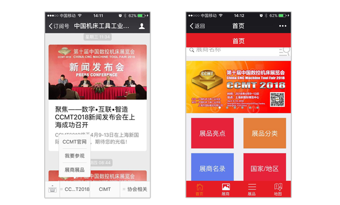 为方便广大观众查询展商、展品并规划参观路线,主办方在各部门积极努力下,已将展商名录、展品清单、展位图等发布上线,观众可通过CCMT展会官网或CMTBA微信订阅号查询。查询步骤如下: