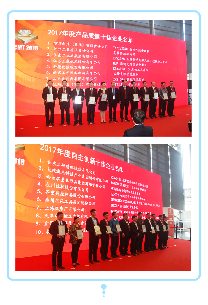 2018年4月9日下午,即CCMT2018展会开幕当天,主办方中国机床工具工业协会在上海新国际博览中心举办了颁奖仪式。