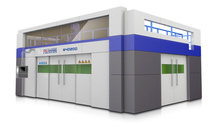 采用目前国际上先进的高架式龙门结构,横梁移动式三维五轴,多轴联动,X、Y、Z轴采用精密磨削的齿轮齿条驱动,三轴配备高精度滚珠直线导轨导向。主要功能部件(光纤激光器,控制系统、三维软件、主要传动件等)配置较高,保证了机床的高速度、高精度、高效率和高可靠性。