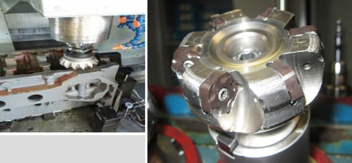 面铣刀系列刀具技术突破:修光刃技术、产品磨削工艺与结构匹配技术、刃口处理技术、精密调节技术、精加工应用技术。技术亮点:五边形结构,67°大主偏角刀具,低轴向力;C类槽型面向铸铁加工,优化的槽型结构,能够从容应对毛坯面冲击加工,新增槽型CMX应对大切深轻切削;P类槽型主要面向P类材料或合金铸铁,在装夹不良的工况也有良好的表现;刀具有三种齿距系列,能够满足不同的工况要求。